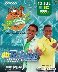 É com imenso prazer que a prefeitura de Oeiras do Pará anúncia a atração nacional “É O TCHAN” como uma das principais atrações do XXXII FESTIVAL DO CAMARÃO EM OEIRAS DO PARÁ, É o Tchan se apresenta na sexta-feira, dia 12 de julho.